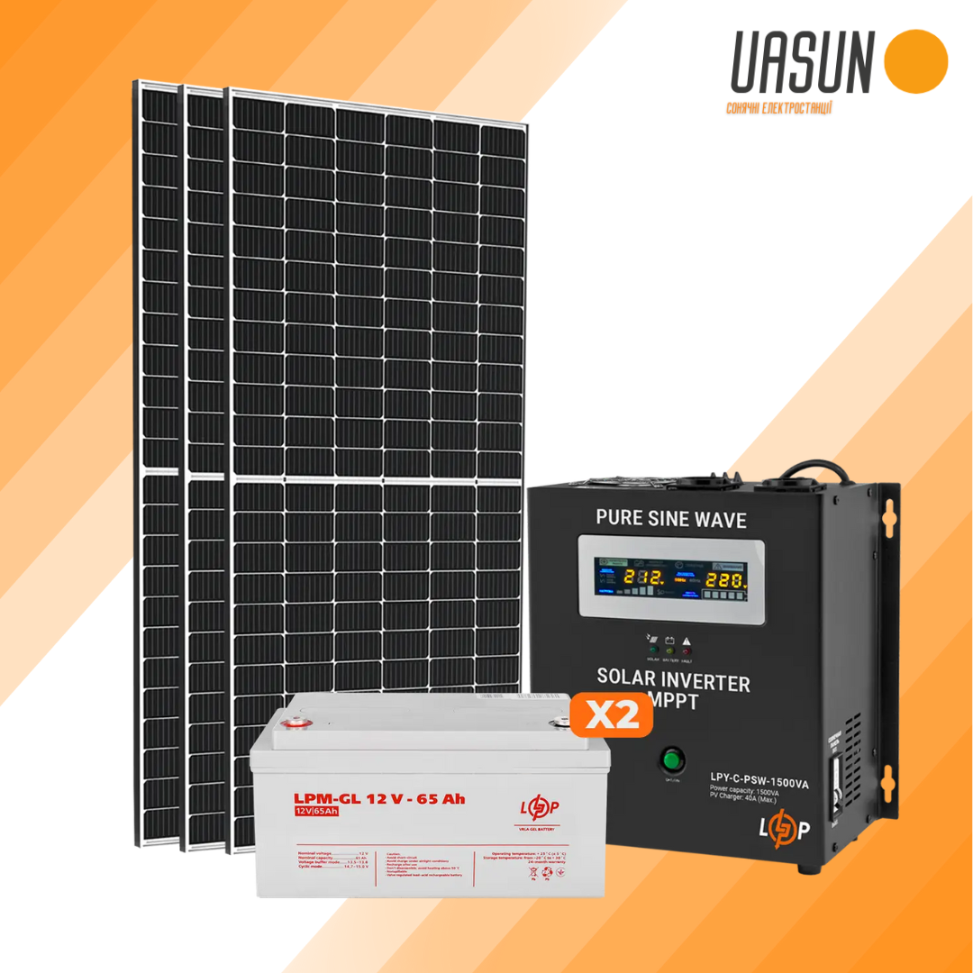 Мініелектростанція для квартири, будинку, офісу 1кВт з гелевим АКБ СЕС Стандарт 1.5кВт/год Gel 65 Ah